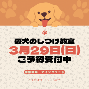・初めての環境・経験の為、しつけ教室参加後に体調を崩してしまうワンちゃんがたまに居ますが自己責任にてお願いします。